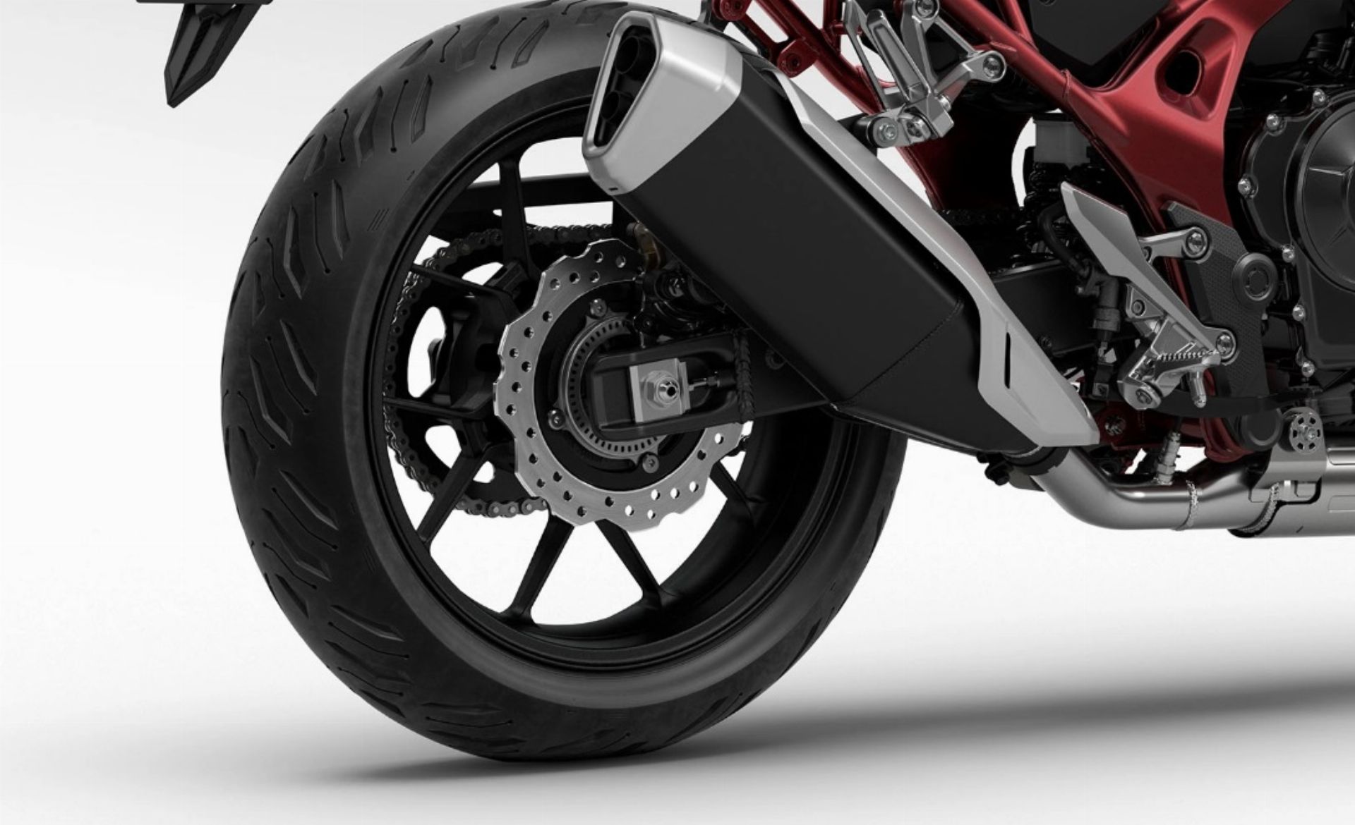 Com rodas de 17'', a nova Honda Hornet entrega equilíbrio, agilidade e controle em qualquer terreno. É a medida perfeita para quem gosta de curvas precisas e visual esportivo.